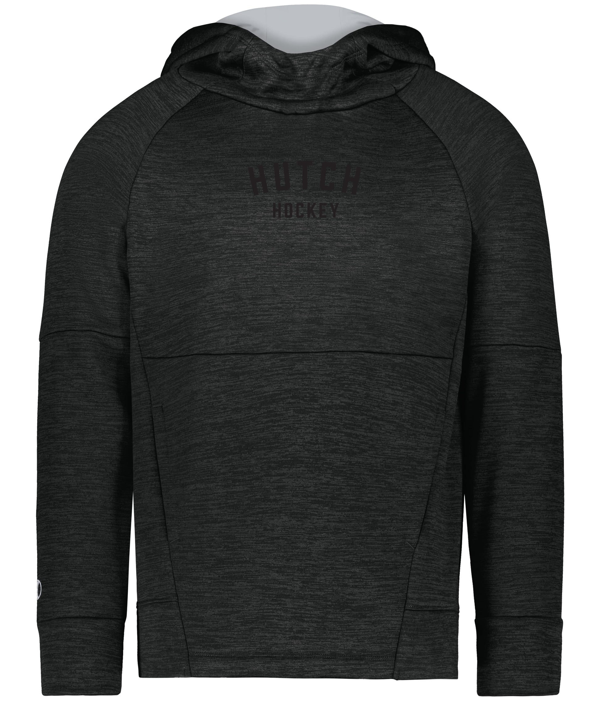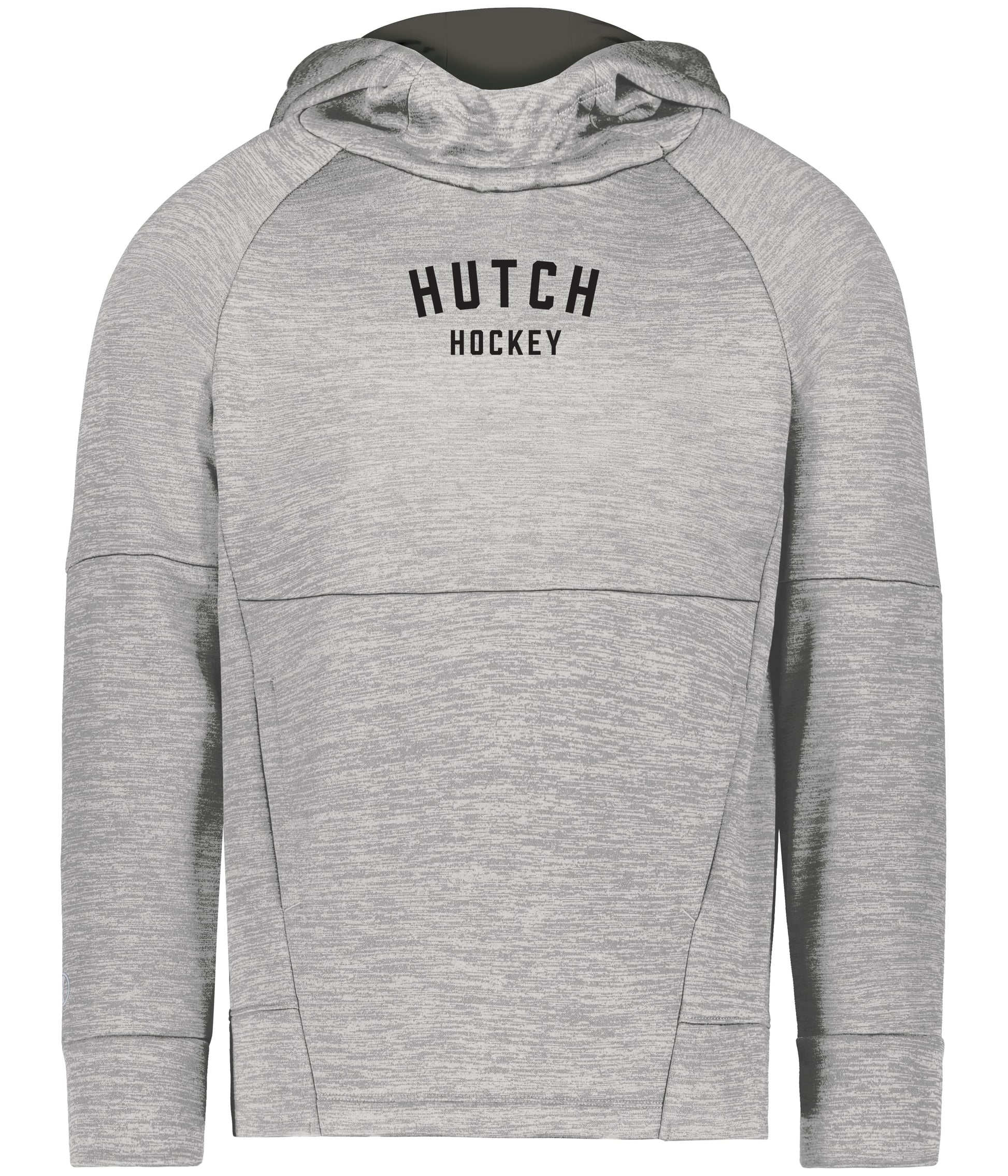 This hoodie blends soft melange fleece with a contrast-lined scuba hood for cool-weather function.