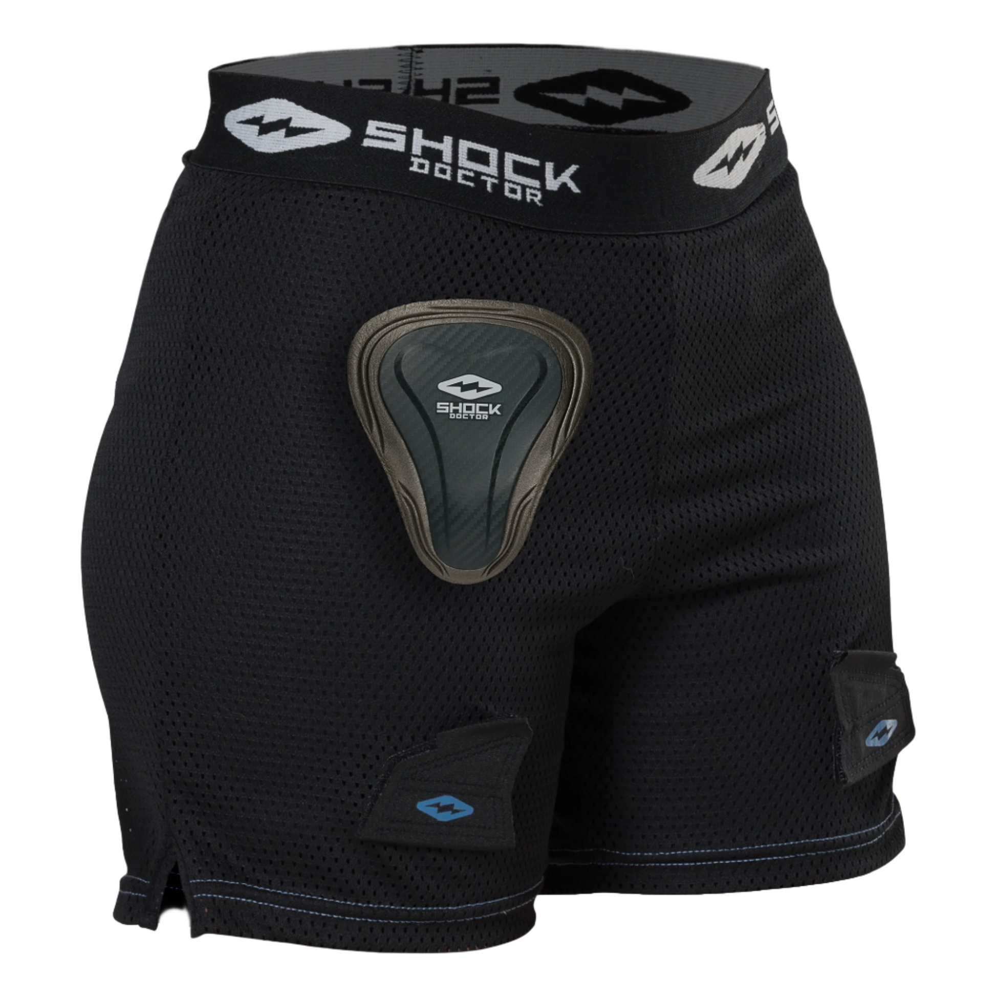NO MOVING PARTS - Integrated pocket holds pelvic protector and secures to short for less movement
